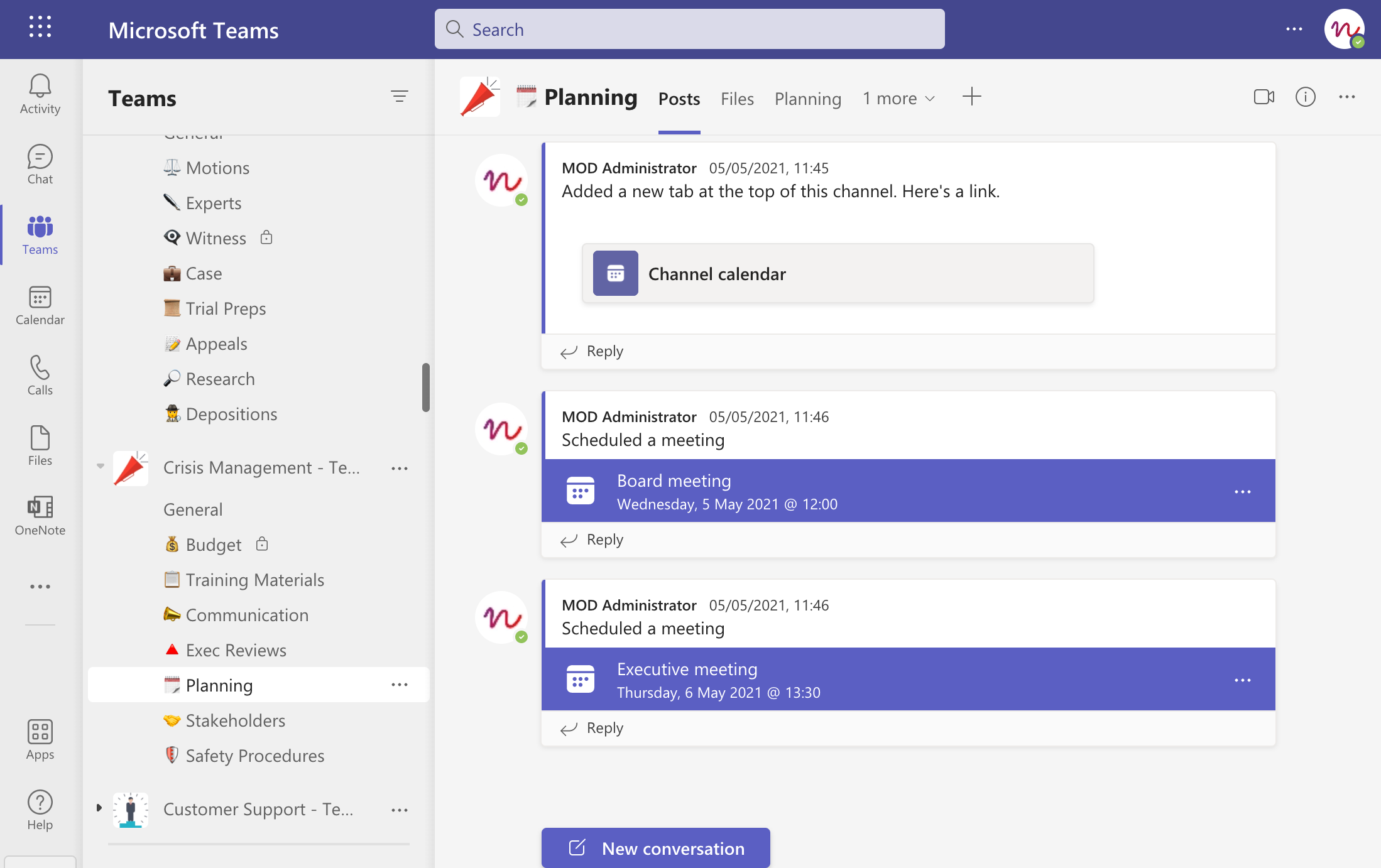 - Once the Collaboration Template named 'Crisis Management' is created, go to the 'Home' tab and select the template