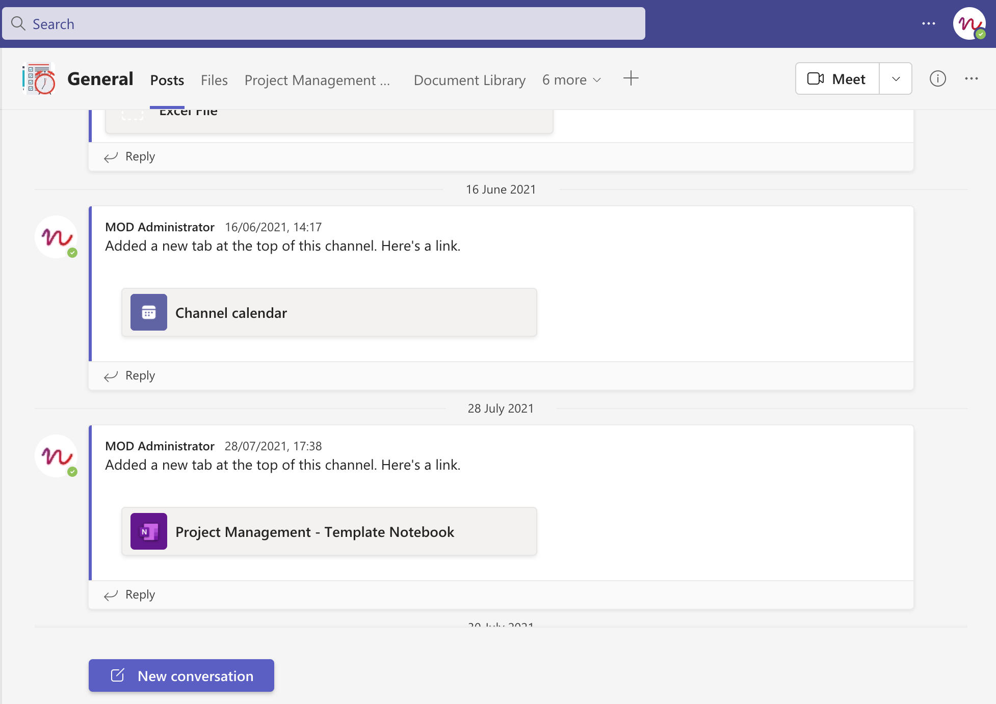 - Once the Collaboration Template named 'Project Management' is created, go to the 'Home' tab and select the template