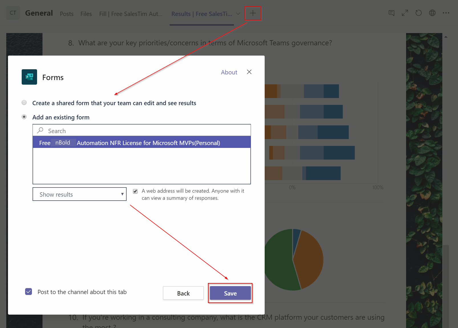 To include your form, just add a new 📋 Microsoft Forms tab in your template team: