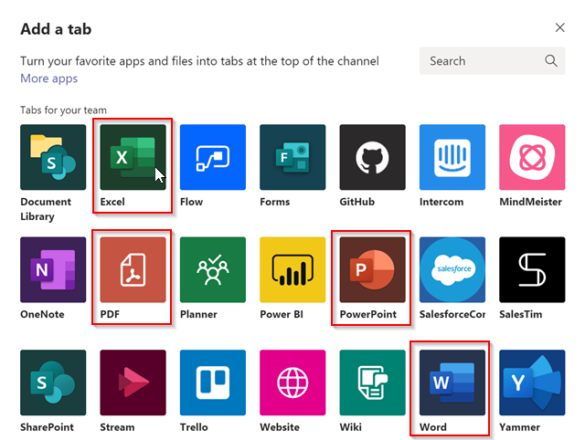 What if you want to bring reference materials from 📘 Word, 📗 Excel, 📕 PowerPoint or 💼 PDF docu;ments in a tab to every team created?