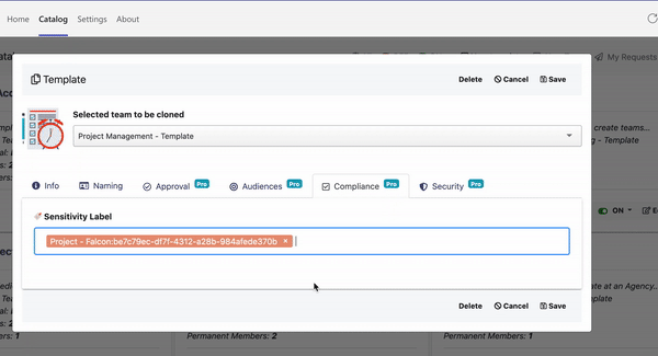 4. Go to the Compliance tab and choose the relevant sensitivity label.