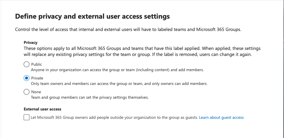 So, with this sensitivity label applied, users won't be able to add externals to new teams created.