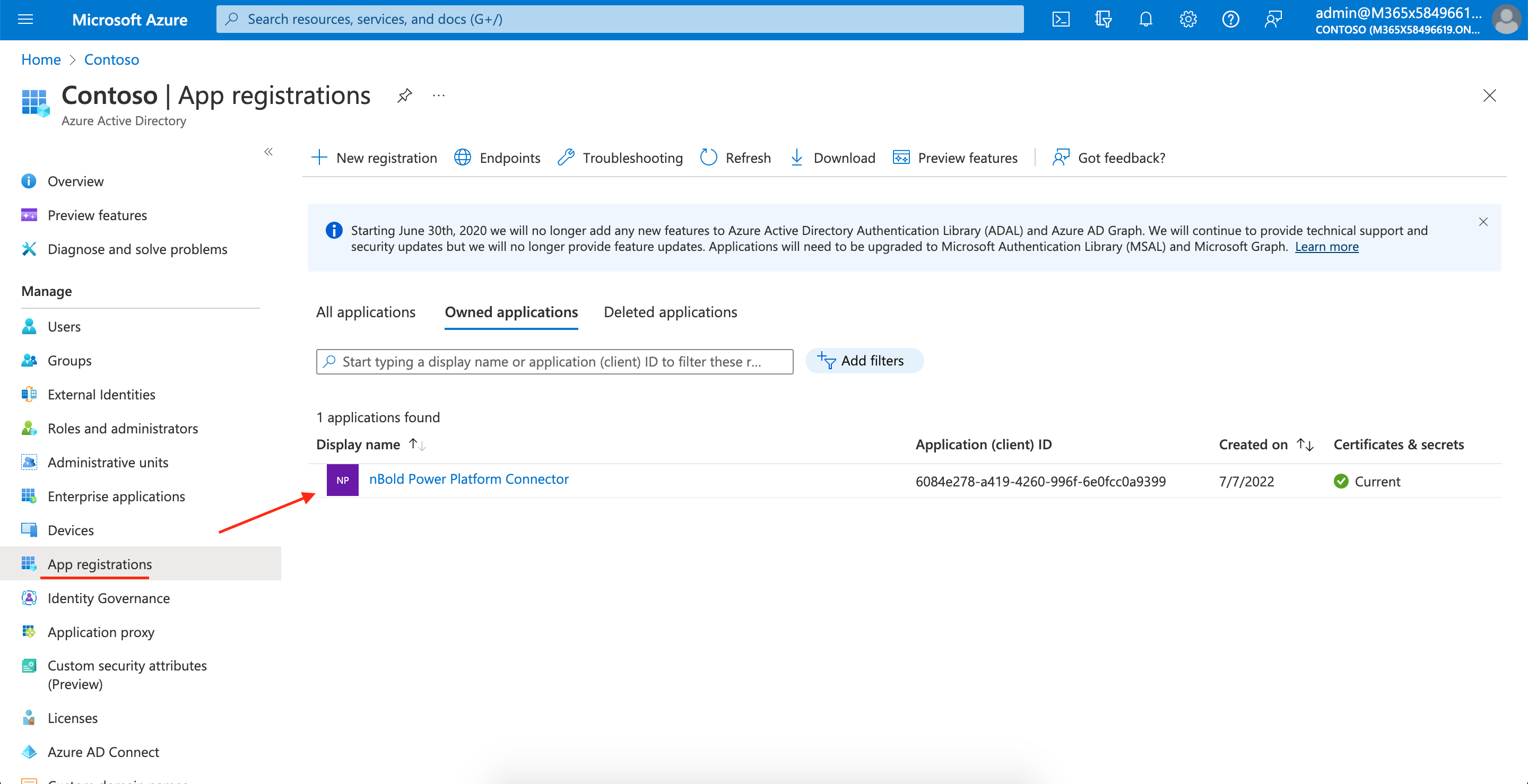 You're done, you've created your app registration for the nBold Connector. You should also have saved for later the Application (client) ID and Client secret that we're gonna use in the next steps.