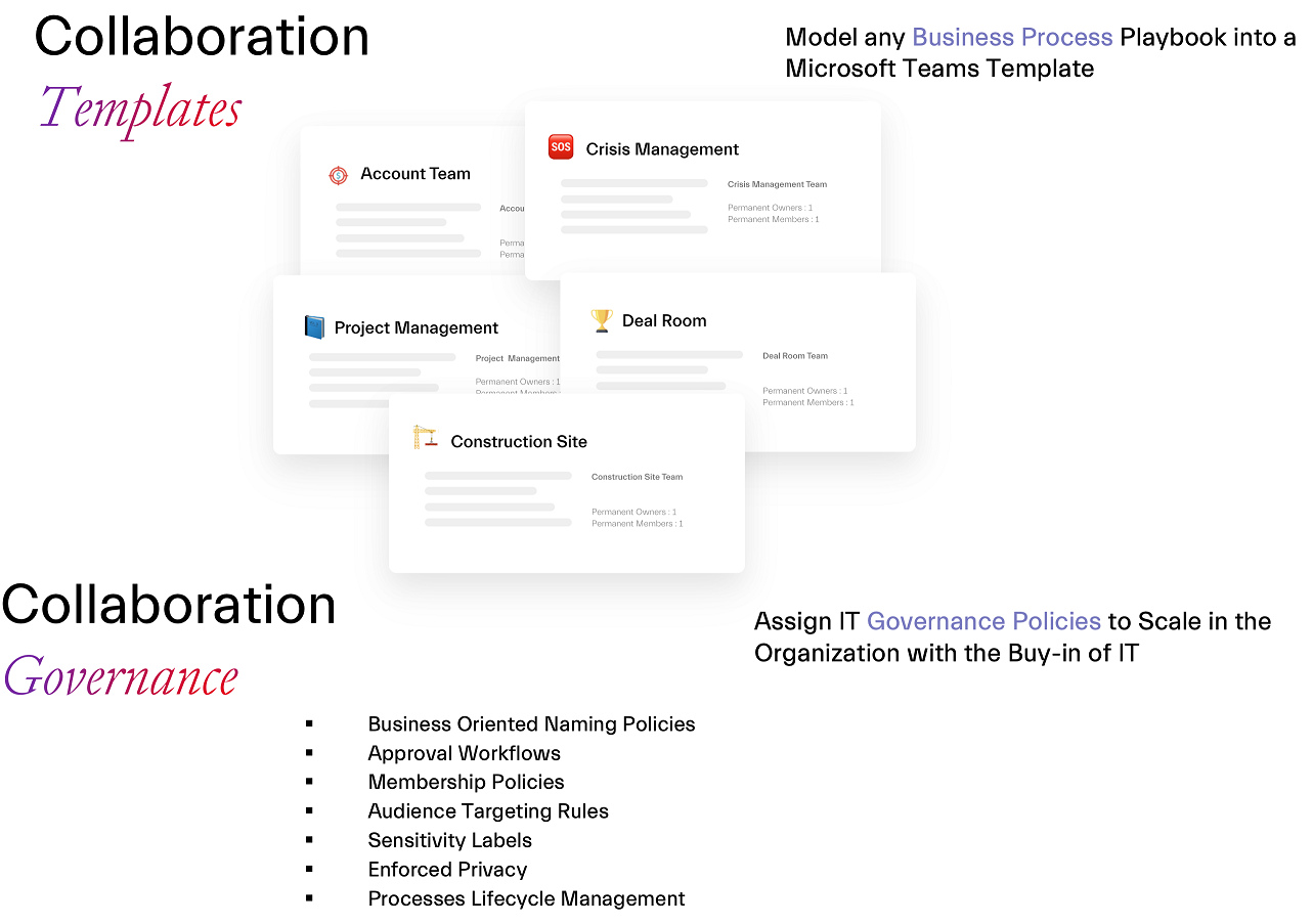 nBold lets organizations build a Collaboration Templates Catalog that the company owns, letting user creates a Team needed to perform Business Activities such as: Proposal Realization, Recruitment Session, Project Management, Crisis Management, etc. Possibilities are endless!